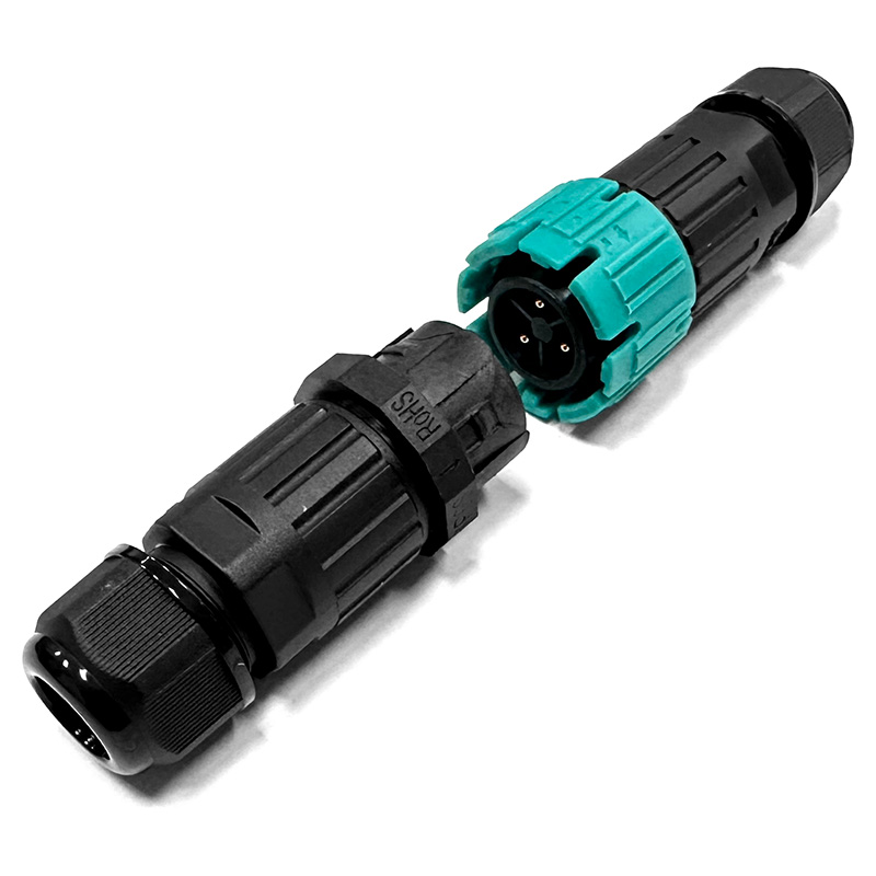 Разъем Weichat EW-M15MF-03201BB6. Разъём линейный кабель-кабель с байонетным соединением. Комплект: вилка на кабель + розетка на кабель. 2 ввода, 3 контактный, IP68, для кабелей диаметром от 3,5 до 7 мм