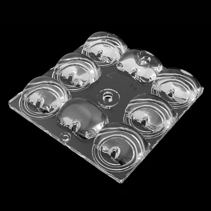 Линза SUNLUMIN S01.01.02.354_MAXWELL-8-T4S-A. Групповая линза для LED модулей на 8 светодиодах (2x3+2) в корпусах 5050 и меньшего размера. FWHM: ассиметричная. Материал: прозрачное оргстекло. Коэфф. пропускания света (эффективность) 83%. Крепление на винты.