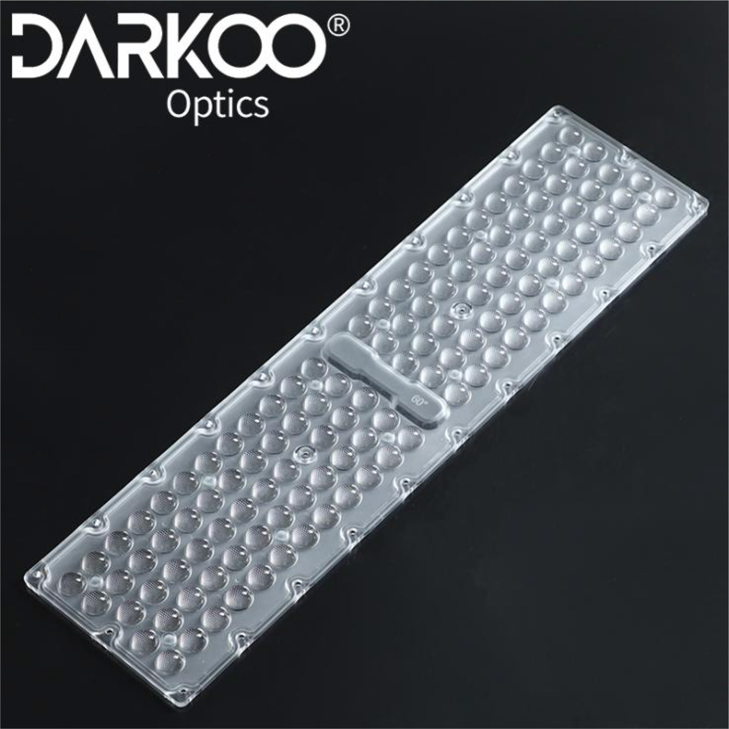 Линза DARKOO DK-521X137-60-LENS-118H1-5050 (with gasket). Групповая линза для LED модулей на 118 светодиодов с типоразмером 5050 из поликарбоната с УФ защитой. FWHM 60°. Ta -35…+120 °C. Крепление винтами.