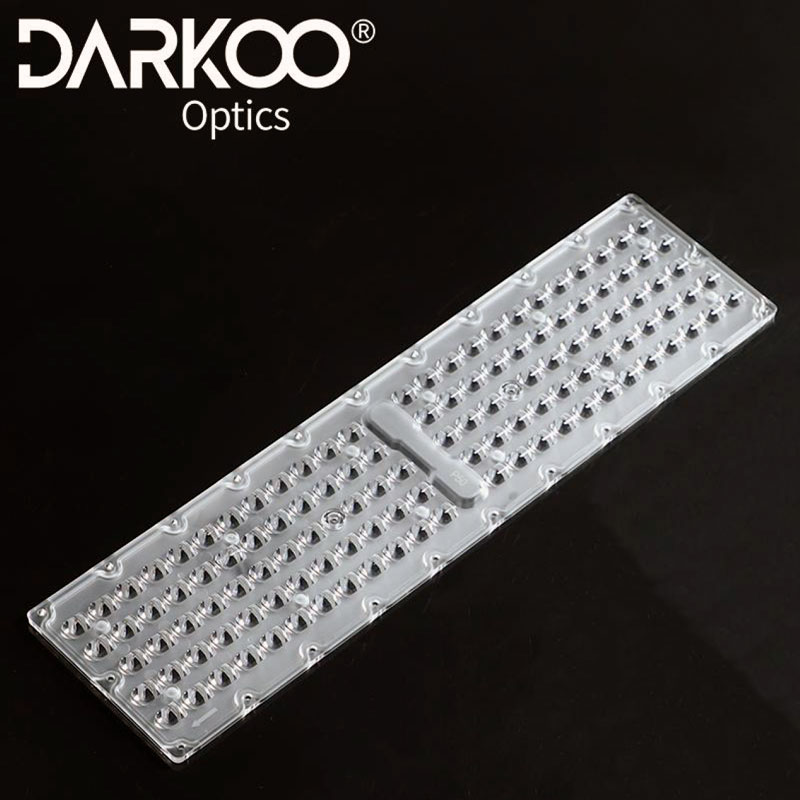 Линза DARKOO DK-521X137-P50-LENS-118H1-P8-H-5050 (with gasket). Групповая линза для LED модулей на 118 светодиодов с типоразмером 5050 из поликарбоната с УФ защитой. Ta -35…+120 °C. Крепление винтами.