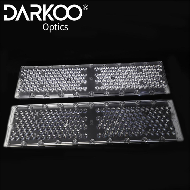 Линза DARKOO DK-521X137-20-LENS-190H1-5050 (with gasket). Групповая линза для LED модулей на 190 светодиодов с типоразмером 5050 из поликарбоната с УФ защитой. FWHM 20°. Ta -35…+120 °C. Крепление винтами.